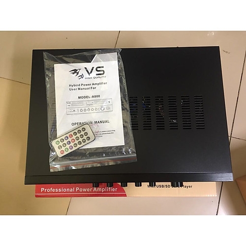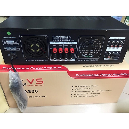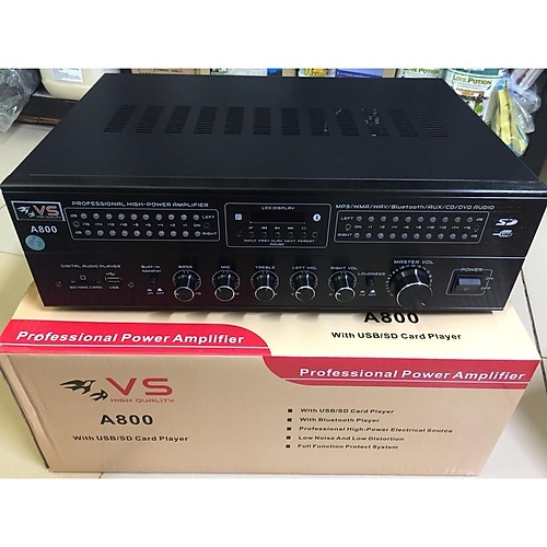 - Amply VS A800 thiết kế theo tiêu chuẩn chuyên nghiệp giúp cho chủ đầu tư tiết kiệm giá thành và điện năng, nhưng lại bền bỉ và phù hợp cho các nhà yến diện tích lớn.