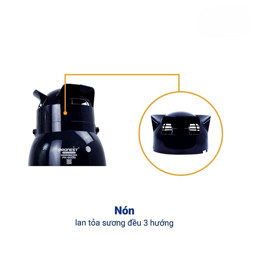 Thiết kế nón 3 hướng giúp hơi sương lan tỏa xung quanh, phân tán đều trong nhà yến hơn. Nón có song nhựa ngăn chặn côn trùng, chim yến bay vào trong gây hư hỏng máy.